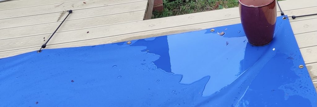 My final, and current option is a more expensive rectangular waterproof tarpaulin from www.allplas.co.uk. I went for their heavy duty range. Cost with shipping for an 8.4m by 5m tarpaulin in blue was £335 but I’m pretty sure it will last me many seasons.